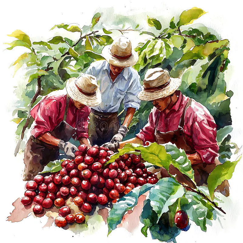 - Strip Picking: All cherries are stripped from the branch at once, regardless of ripeness.The quality of coffee often depends on how carefully the cherries are harvested.Coffee plants grow best in rich soil, mild temperatures, and consistent rainfall. It takes about 3 to 4 years for a coffee plant to produce its first fruit, known as coffee cherries. These cherries are small, round, and usually bright red when ripe.